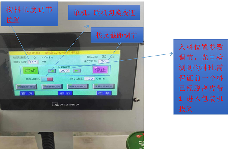 3.處于聯(lián)機(jī)模式啟動包裝機(jī)后自動理料線會自動運(yùn)行.